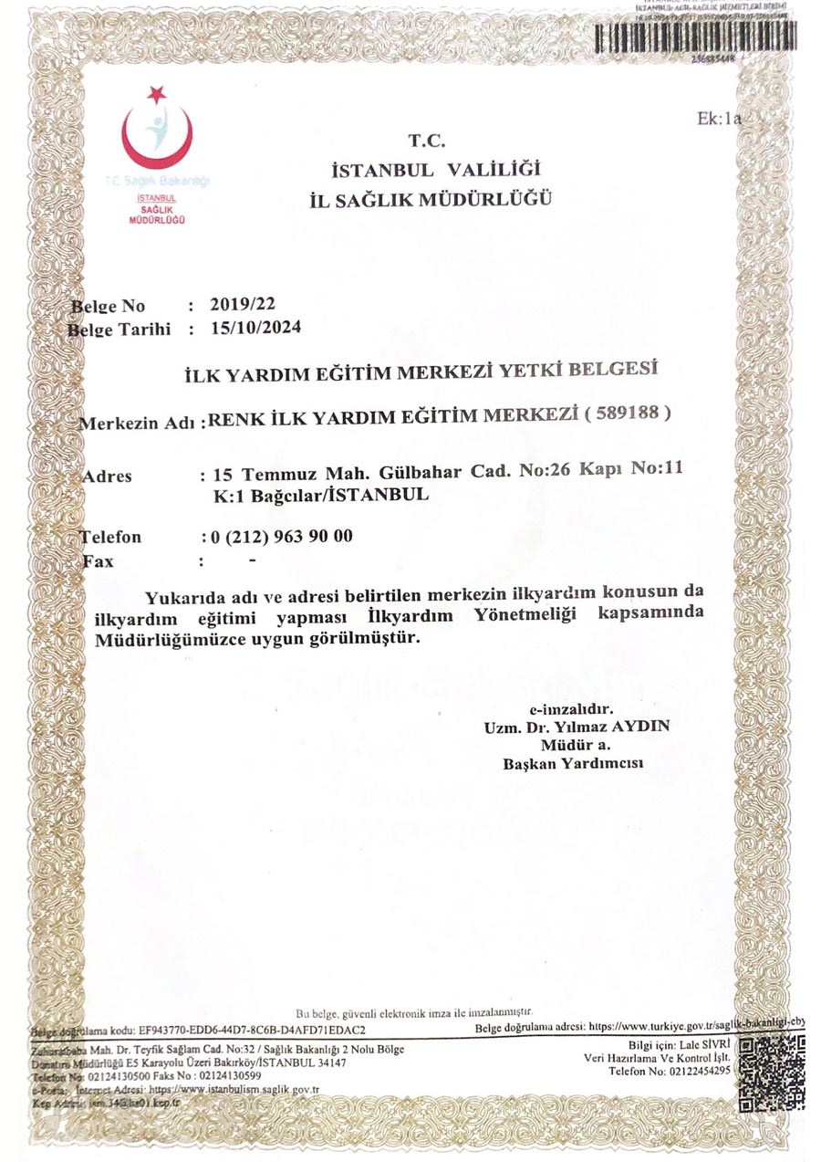İlk Yardım Eğitim Merkezi Yetki Belgesi